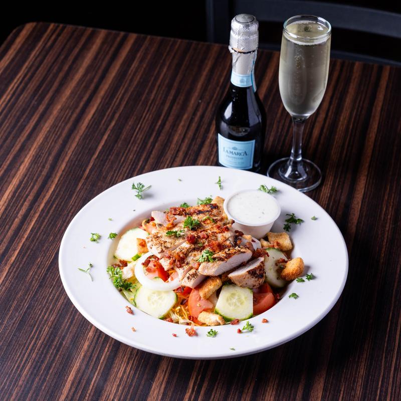 Lettuce blend, sweet tomatoes, crisp cucumbers, applewood smoked bacon, toasted croutons, ripe avocado, sliced fresh grilled chicken topped with our homemade ranch dressing • Sub/Add Shrimp +$4.00 | Sub/Add Fajita +$2.00